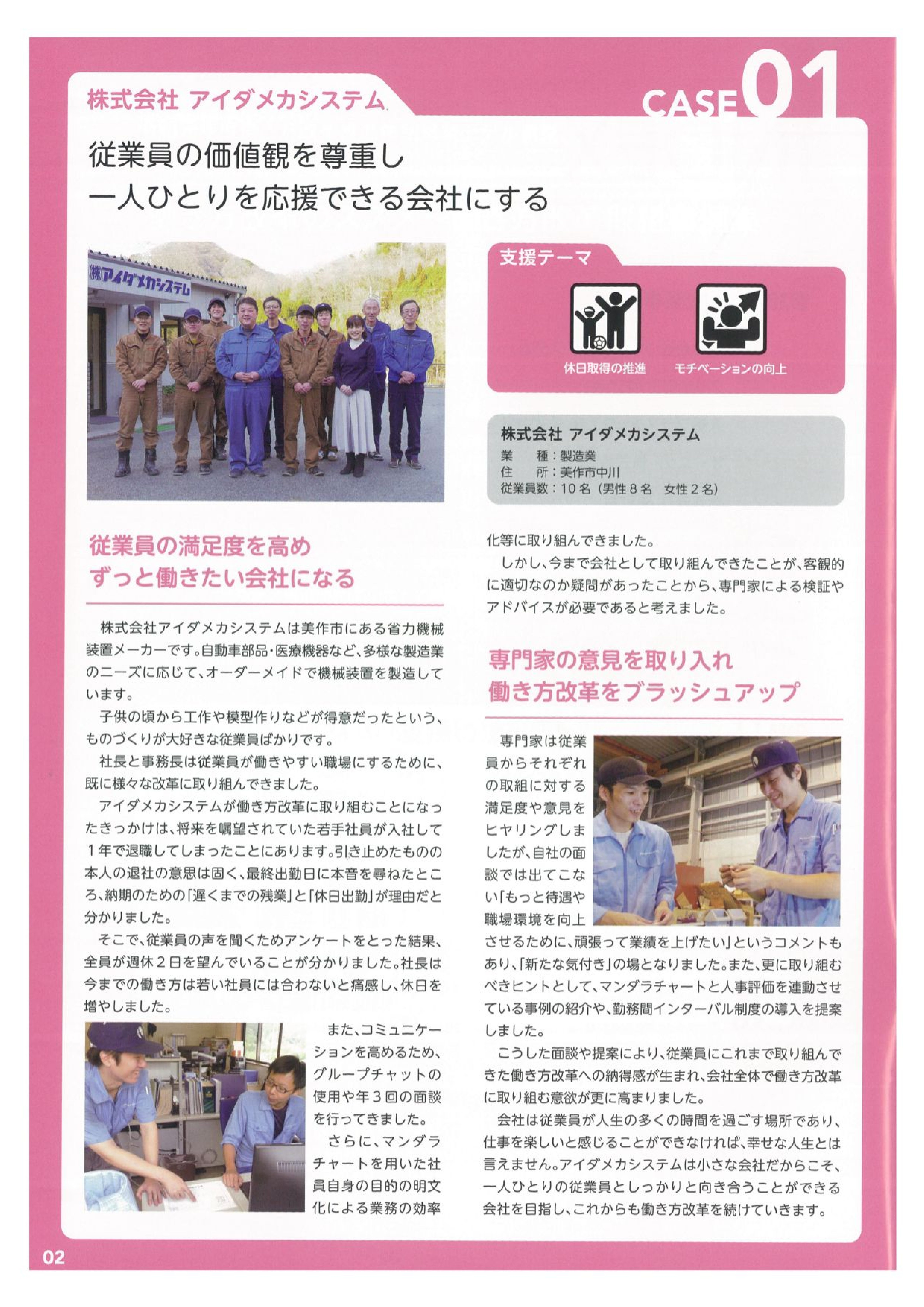 2020年5月22日 ブログ 働き方改革のススメ 昨年度、岡山県の「働き方改革推進事業」に取り組みました! 弊社では従来から「働きやすい環境づくり」について いろいろな取り組みをしていましたが、 更に良くしていくべく、専門家の方にいろいろと アドバイスいただきまして、さまざまな改善を令和元年度に行いました。 その事業紹介についてのパンフレットが 出来上がり、弊社も概要を掲載していただきました✨ これからも働きやすい職場づくりを目指して 制度や職場環境の改善に取り組んで いきたいと思います😊 ↓↓↓ パンフレット(PDF) ↓↓↓ 令和元年度 働き方改革のススメ パンフレット 0