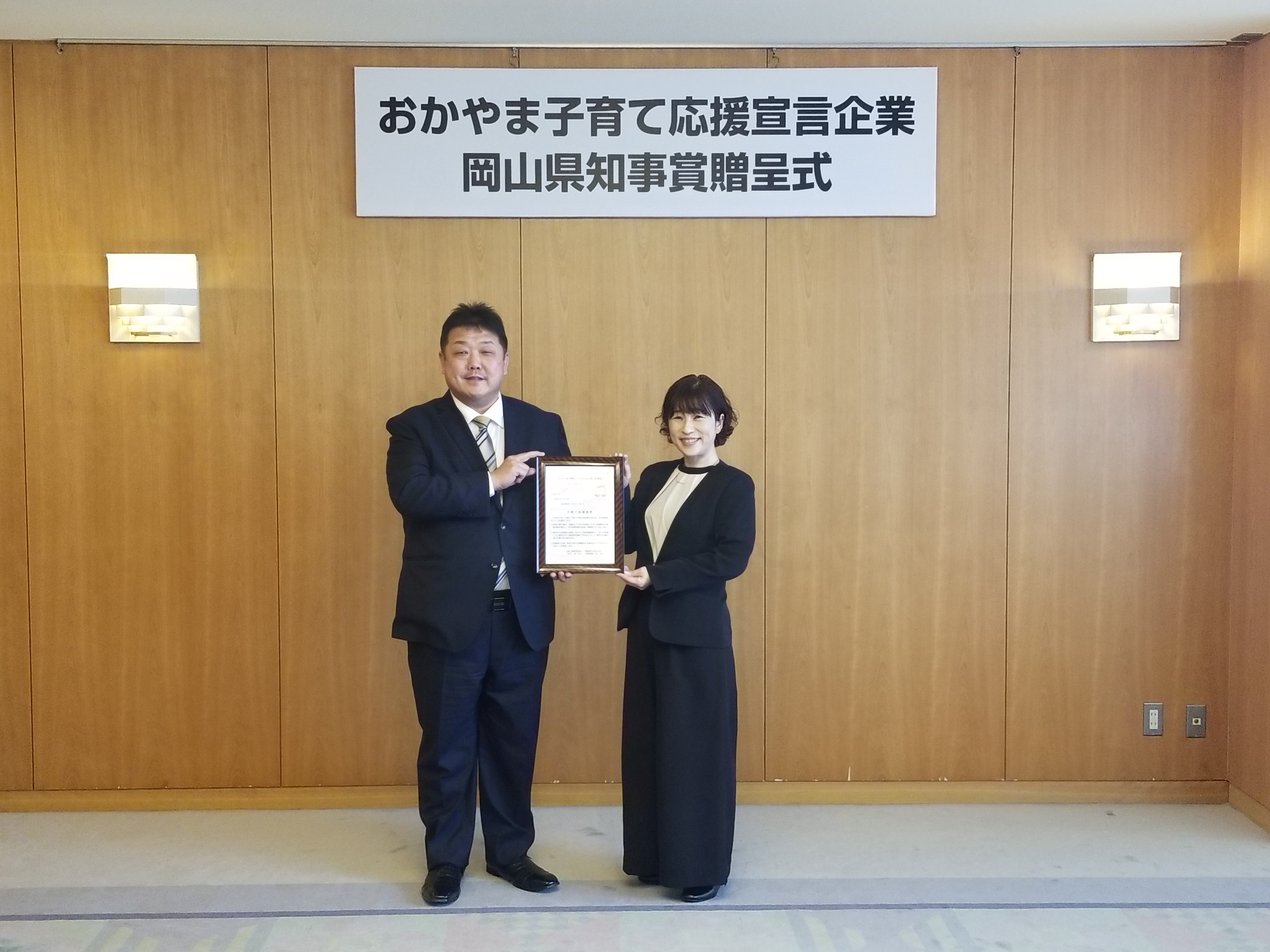 おかやま子育て応援宣言企業 県知事賞 受賞