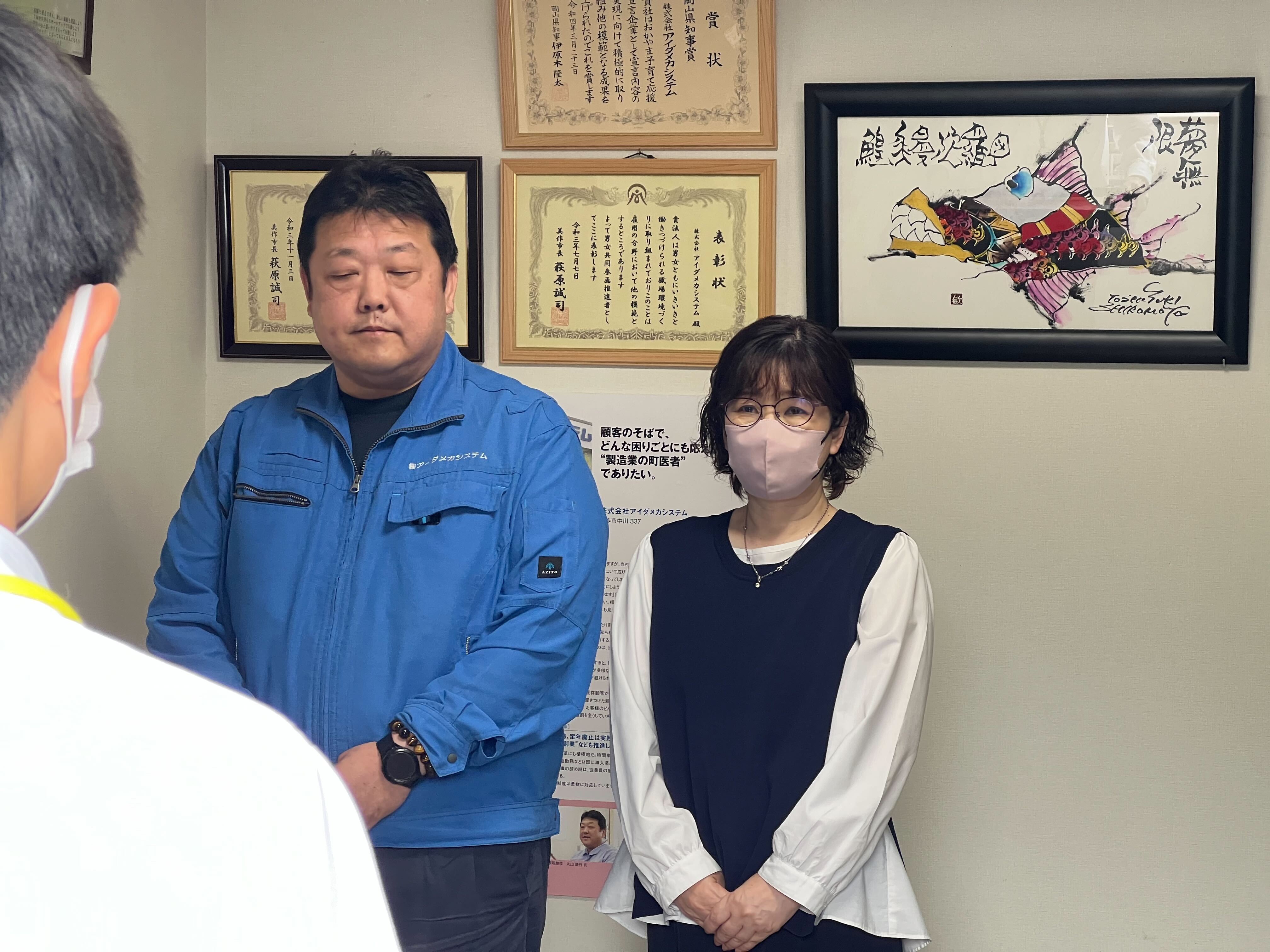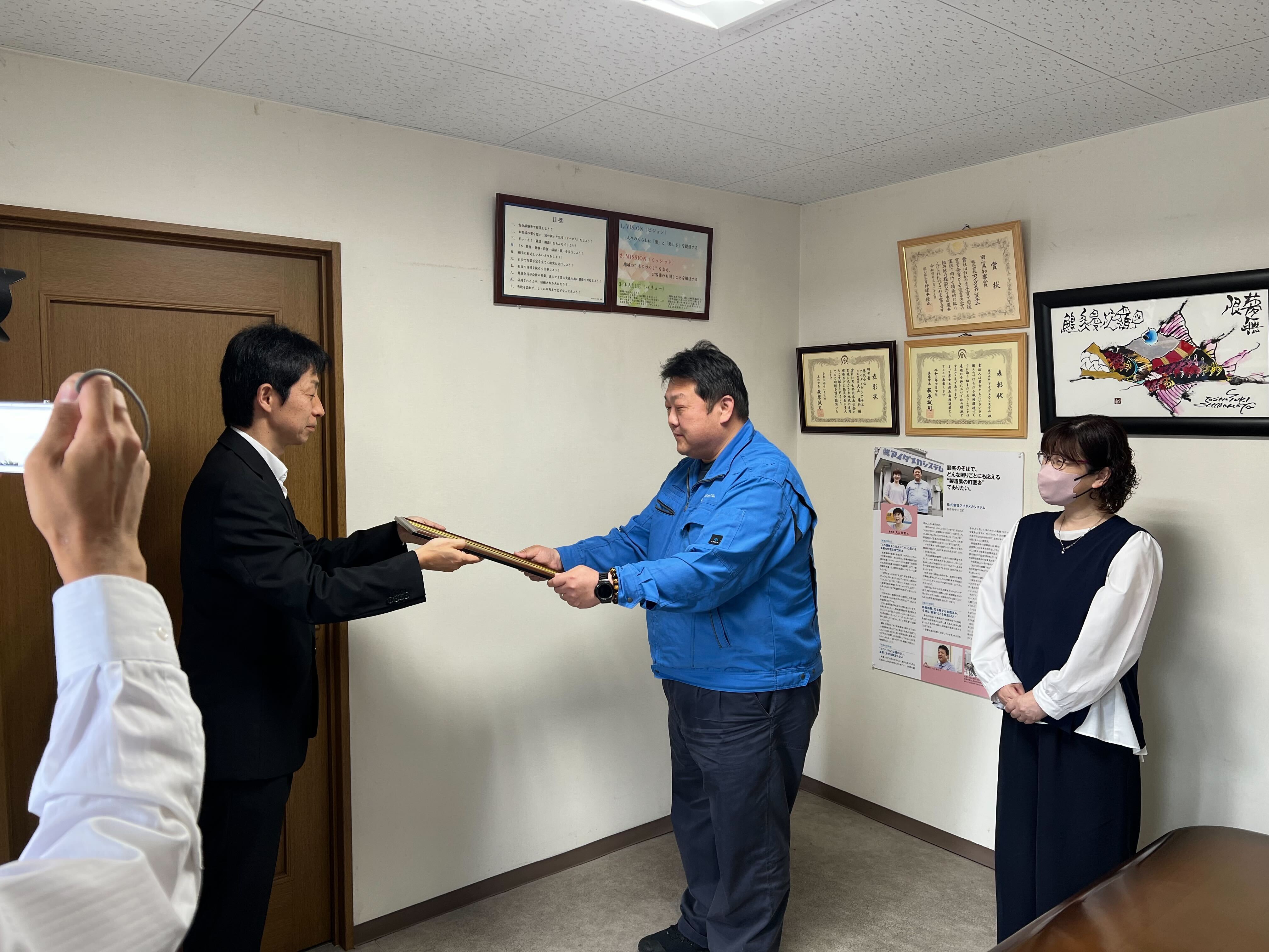 岡山県より「将来世代応援企業賞」の伝達式にお越しいただきました。