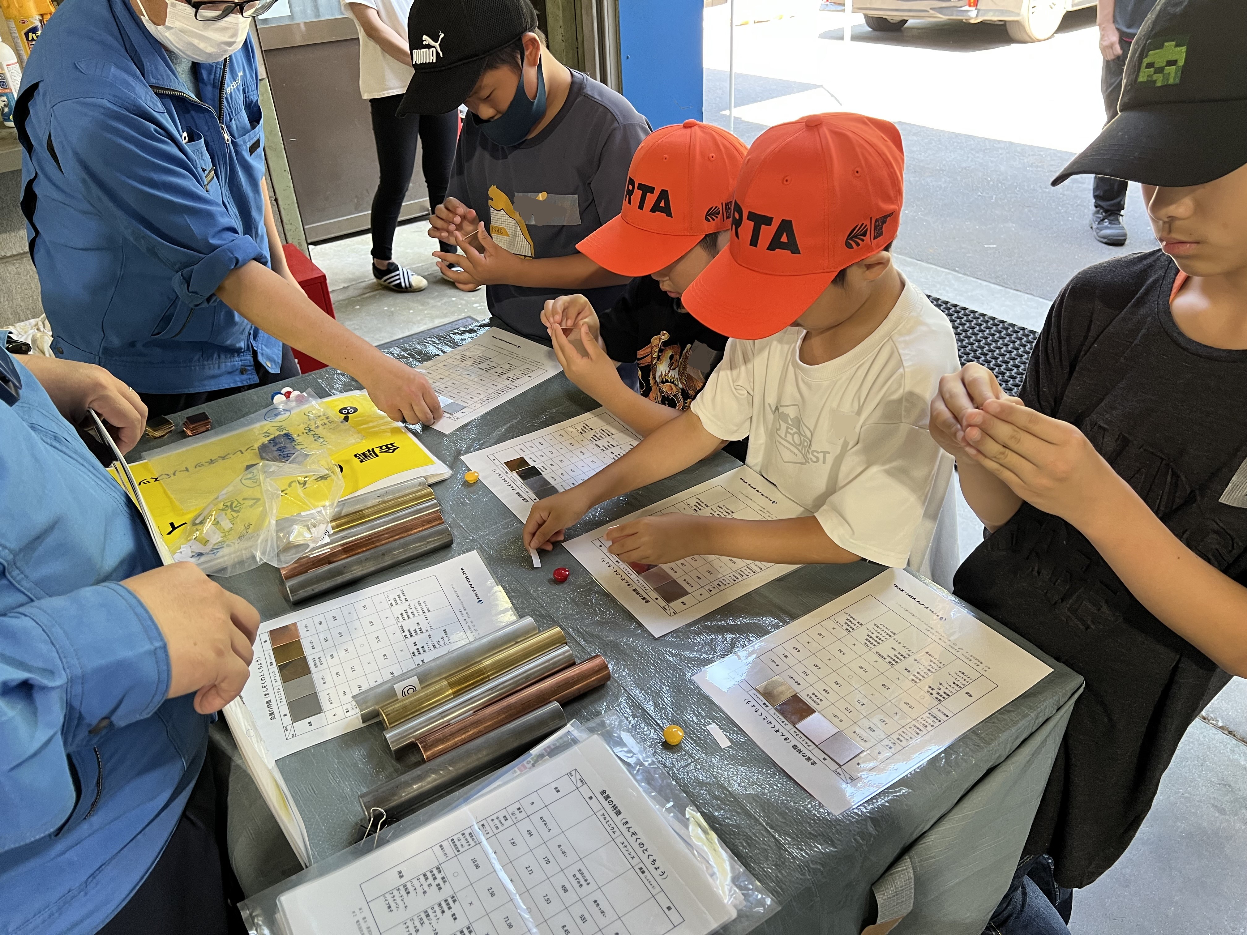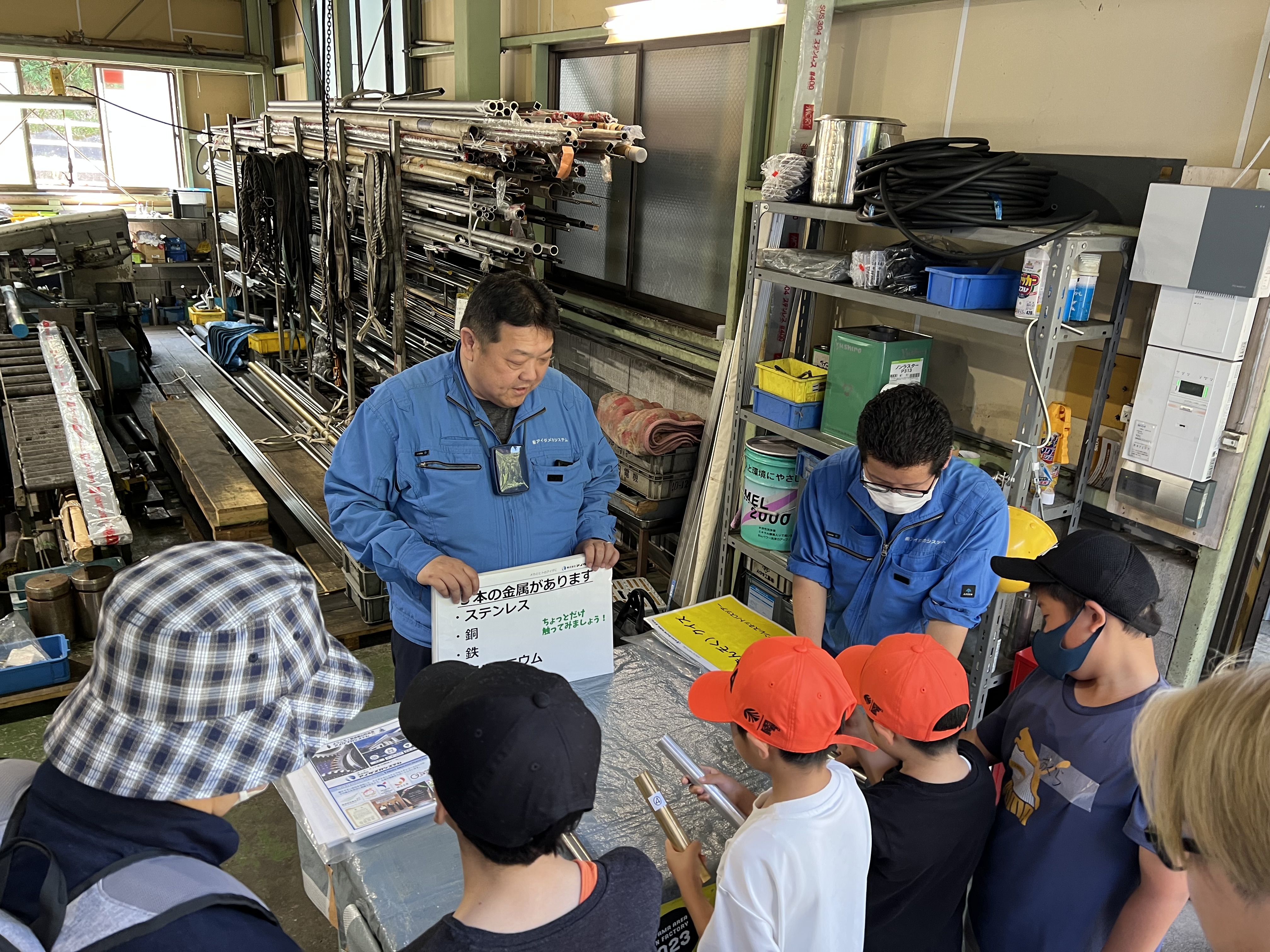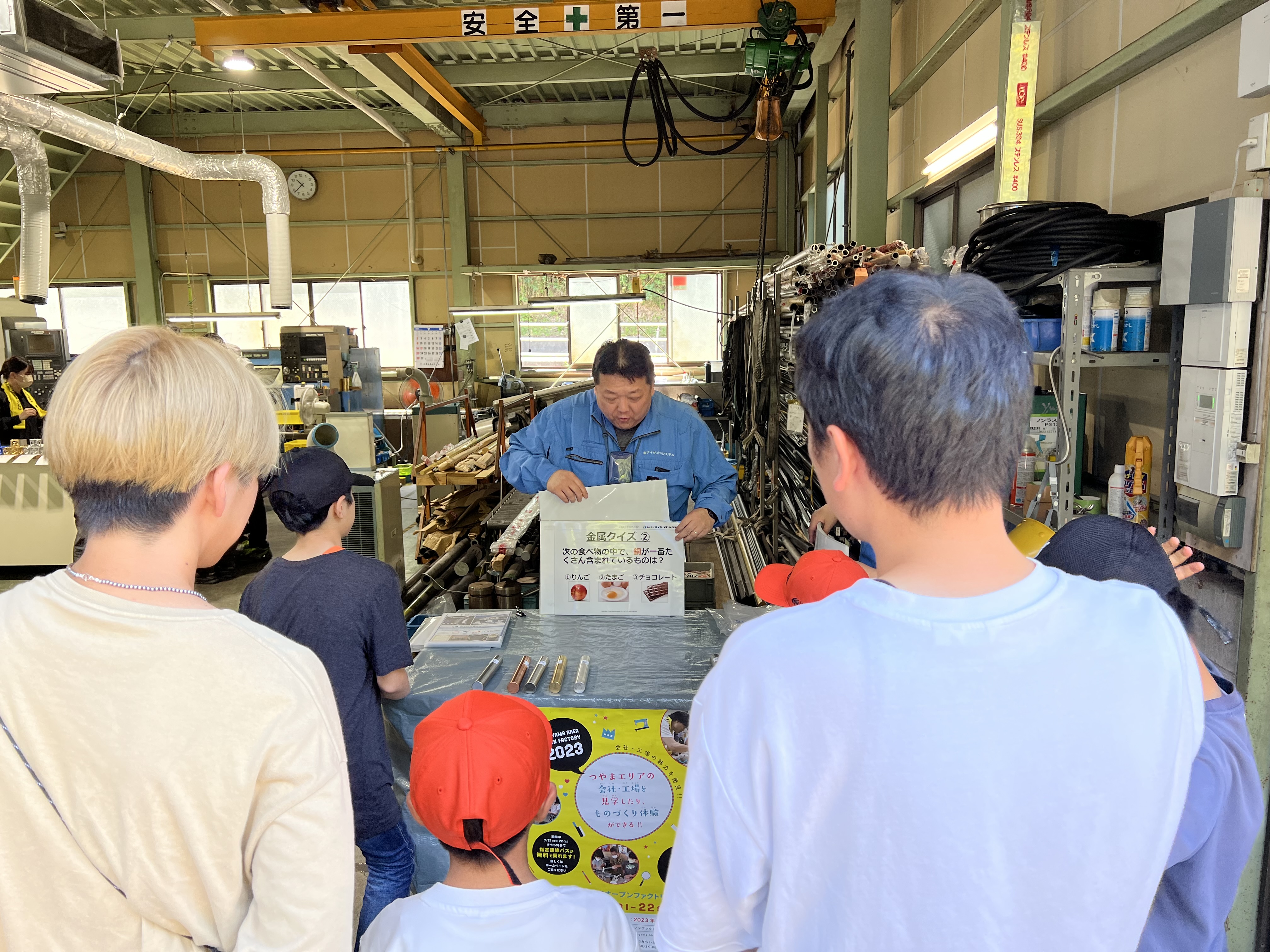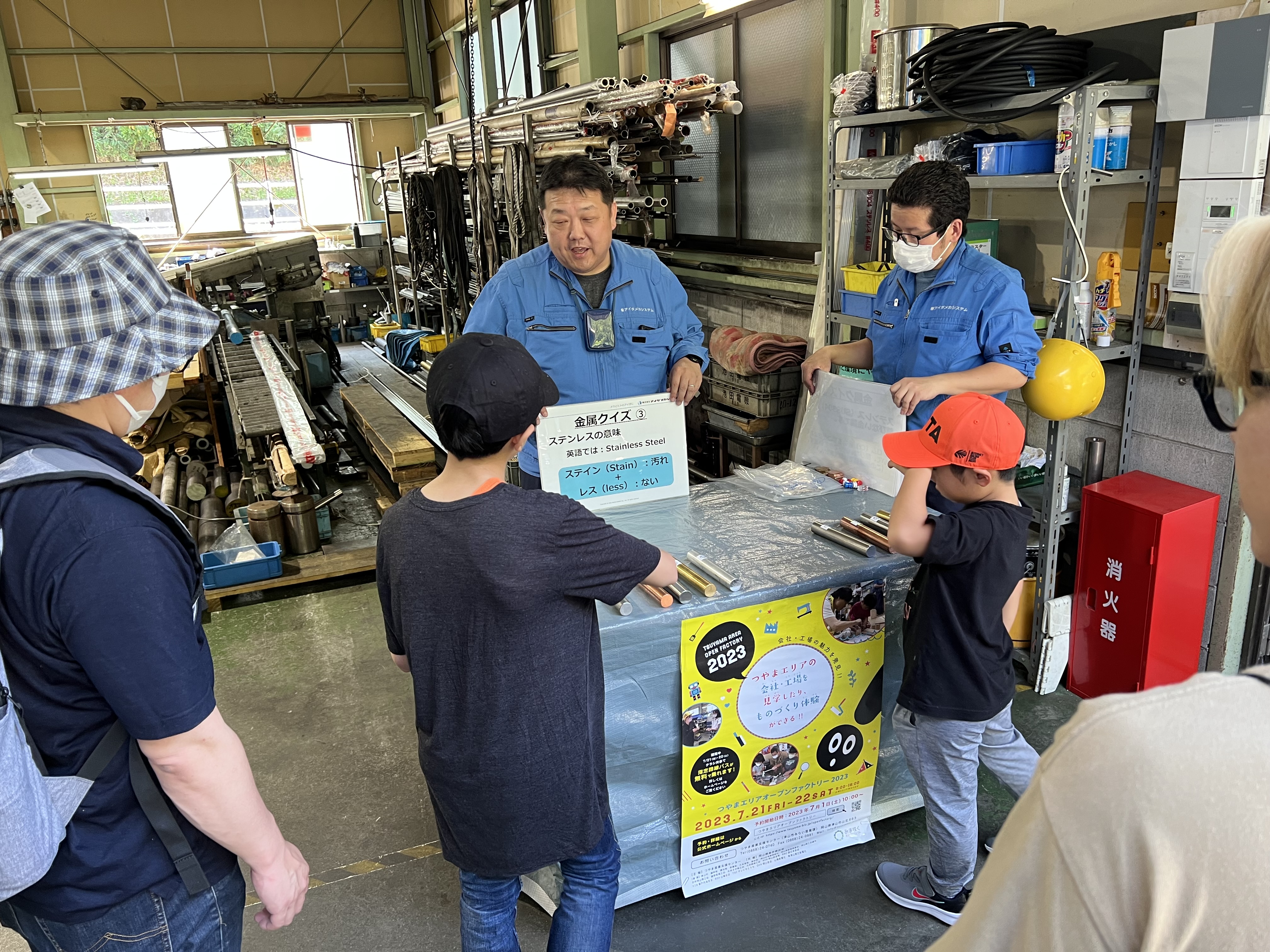 こちらでは工場内を間借りして、金属の特性について勉強+クイズをしました!