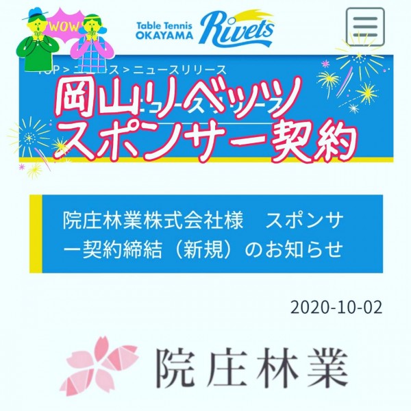 岡山県で活躍している卓球のプロチームである【岡山リベッツ】のスポンサー契約を締結しました。