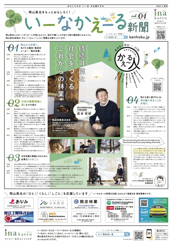 6月6日(日)の山陽新聞折込チラシ「いーなかえーる新聞」にて院庄林業が紹介されました。