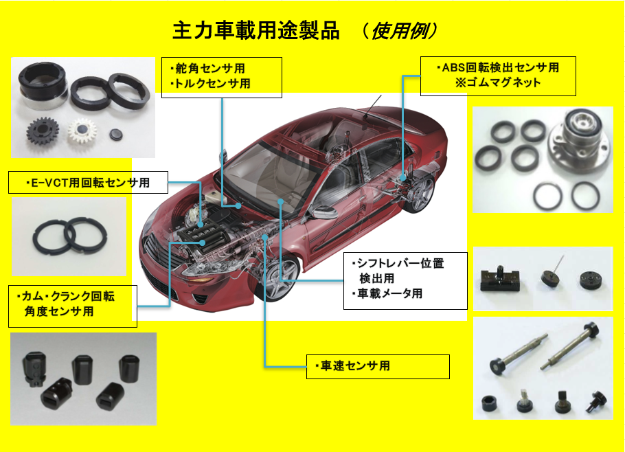 ハードマグネットとは、磁力を帯びた陶器のようなもの。磁石を含む複数種類の原料を粉末の状態から独自の配合と方法でブレンドし、型に流し込んで成形して、車のエンジン周りに取り付ける部品などを製造するのが、いまの柵原工場の主力事業です。国内の大手自動車メーカー複数社とも取引があり、世界市場ではおよそ30%、国内市場だけならおよそ90%程度の自動車に柵原工場で作った部品が使われています。
