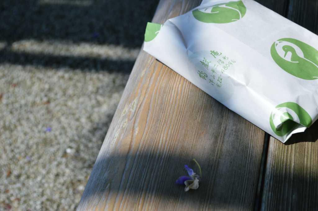 桜の名所である津山城。その頃すでに桜の見頃は終えていたが、新しい春の気配が爽やかで、思わず深呼吸したくなるような、穏やかな時間が流れていた。和菓子をいただくことにしたのは、上りきったところにある、藤棚の下のベンチ。