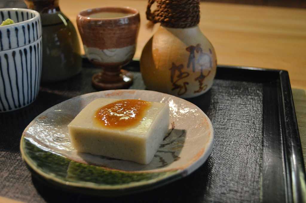 サイドメニューからも、蕎麦へのこだわりを強く感じられる。そば豆腐は、食感が面白く、噛むほどに口の中で香りが広がる。一緒に頼んだ冷酒は、島根県松江市 李白酒造の、特別純米酒。そばにも、そば豆腐にも、相性がいい。岡山県の地酒ももちろん美味しいのだが、「日進月歩」でいただける日本酒は、この一種のみ。ご主人が自分の足で探して本当に合うものを見つけているのだろうと、こういうところからもこだわりを垣間見ることができる。ソバロアも、名前だけでなくセンス抜群のお味で、大のお気に入りになった。「ミシュランガイド京都・大阪+岡山 2021」でミシュランプレートに選ばれているというのも、納得である。