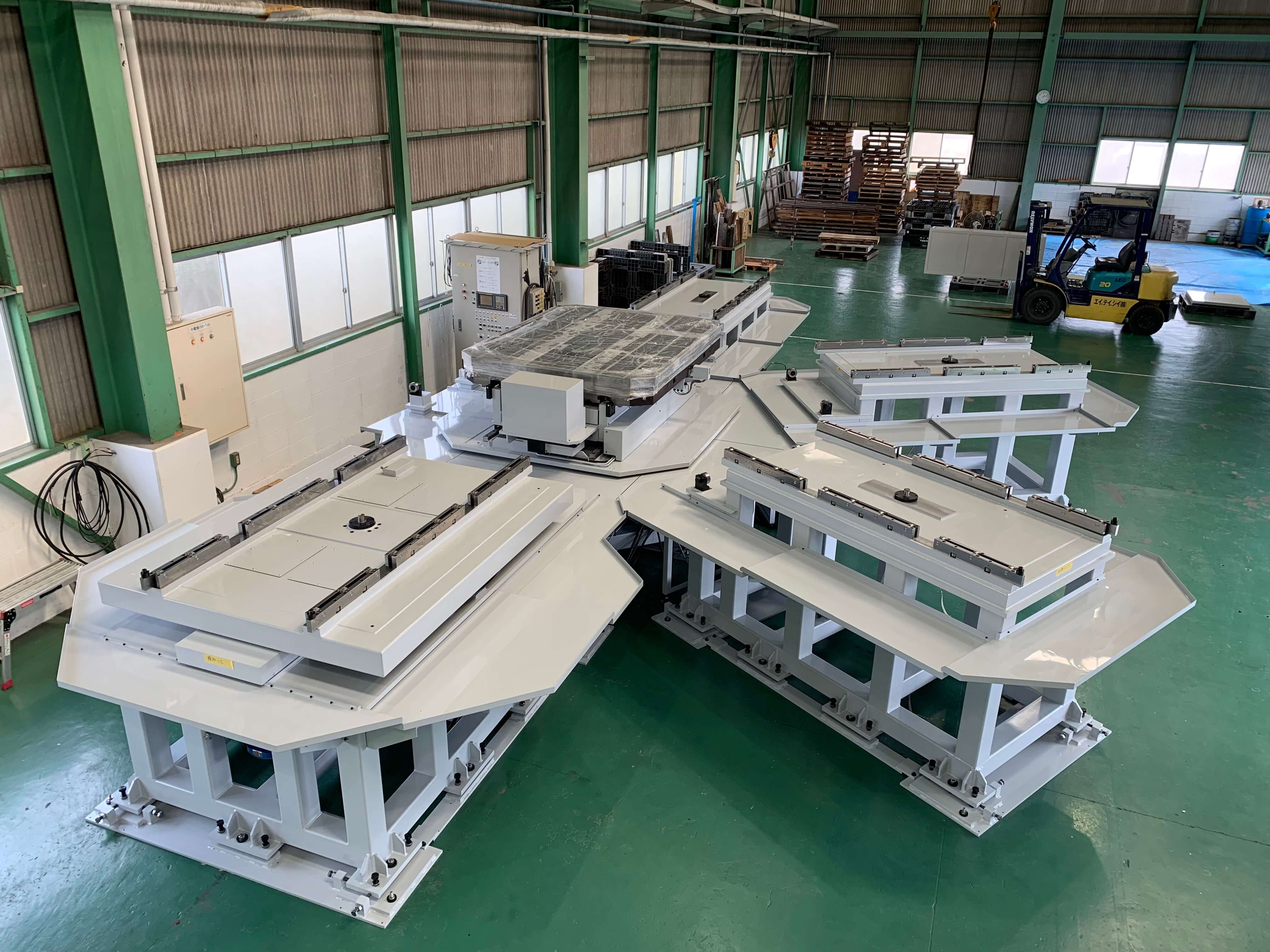 工作物(ワーク)が乗った台(=パレット)ごと自動で工作機械にセットしたり、次の工程へ運んだりする工作機械周辺装置の総称。特に、大きな工作物(ワーク)に対し使われることが多い。