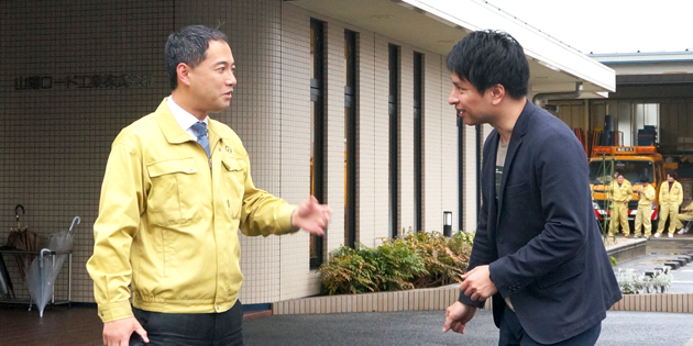 | 秋田 | すべてが悪いことではないと思いますが。うちに入社してくる方は、結構大手から転職で入ってくる人もいます。やっぱり次に転勤でどこ行くかわからないっていうのが、一番辛いって言います。 例えば、工期が終わって東北にいたかと思ったら、来月からは突然、次は沖縄っていうことも十分あるんですよね。沖縄なのか、北海道なのか、東京なのかよくわからないっていうのが一番辛いと言われます。 そして沖縄で案件がとれたら、沖縄の工事案件と、あの北海道の工事案件を狙ってるなというのは、なんとなくわかるんですけど。どれが実際にとれるかは、わかんないじゃないですか。どれがとれるかわからない、つまり、どこに行かされるかわからないというのが、やっぱり厳しいみたいです。 そこで、山陽ロード工業に入社して、ここで腰を据えて仕事するのが一番よいと言ってくれる人が社内でもけっこう多いんですよね。 |