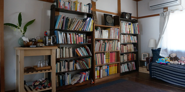 | チャールズ | 一般の方がと言うより・・・この家の2階では宿泊サービスもしていますし、1階では語学スクールと、パン工房を開いています。現在図書館は、主に宿泊のお客様に憩いの場として。それから語学スクールの生徒さまには、洋書などもあるので貸し出したりしています。 |