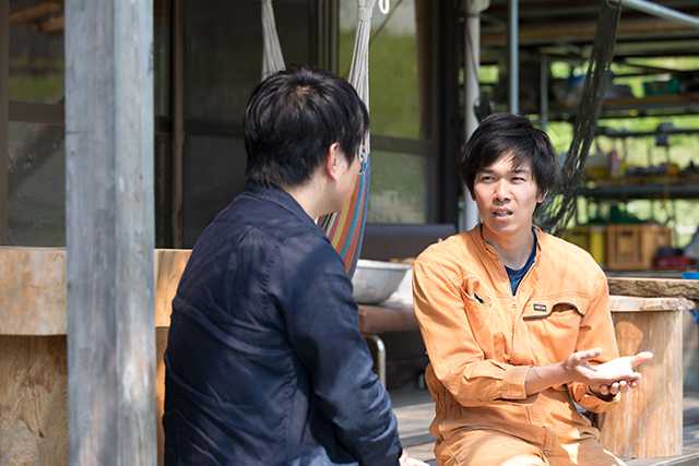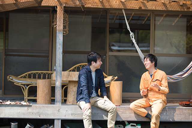 | 梅谷 | 大切にしているのは、「ちゃんと話す」ということです。本当にいろんなジャンルの人たちも訪ねてきてくれるので、わかりやすくちゃんと話ができないと、ここを好きになってもらえない、理解してもらえないですし、地域のおじいちゃんたちにも僕を理解していただけないです。 おじいちゃんたちにはちょっと方言を入れながら、「ええが」とか「何じゃ、何じゃ」とか言いながら。言わんと伝わりにくいですし、その人に合わせてちゃんと話すということをもっとできたらなと思いますね。 |