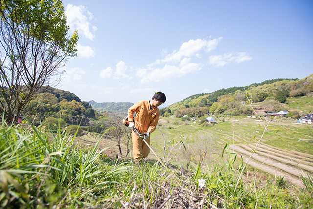 | 梅谷 | 習って勉強したことですね。でも、耳にタコができるほど聞くんですけど、実際どうやって問題を解消して管理するかまでは大学では習った記憶があまり残っていないです、勉強しながら気になっていました。 いざ働くとなり、就職活動もしましたけど、何かこのままサラリーマンになるのもな・・・とか、いろいろ考えました。そういう感じではない働き方もあるのではないかと。途上国へ旅したり、ツアーを企画したり、それらを大学の中で2、3回繰り返しているうちに、日本の農山村にも出かけるようになって、たまたま出会ったのが英田上山棚田団でした。 “本当に自分がやりたいこと”を仕事にできる、しかもそれが“誰と”できるというところも考えると、ここ上山という場所でチャレンジしてみたら面白いと思いました。上山にはある種たどり着いたところです(笑)。 |
