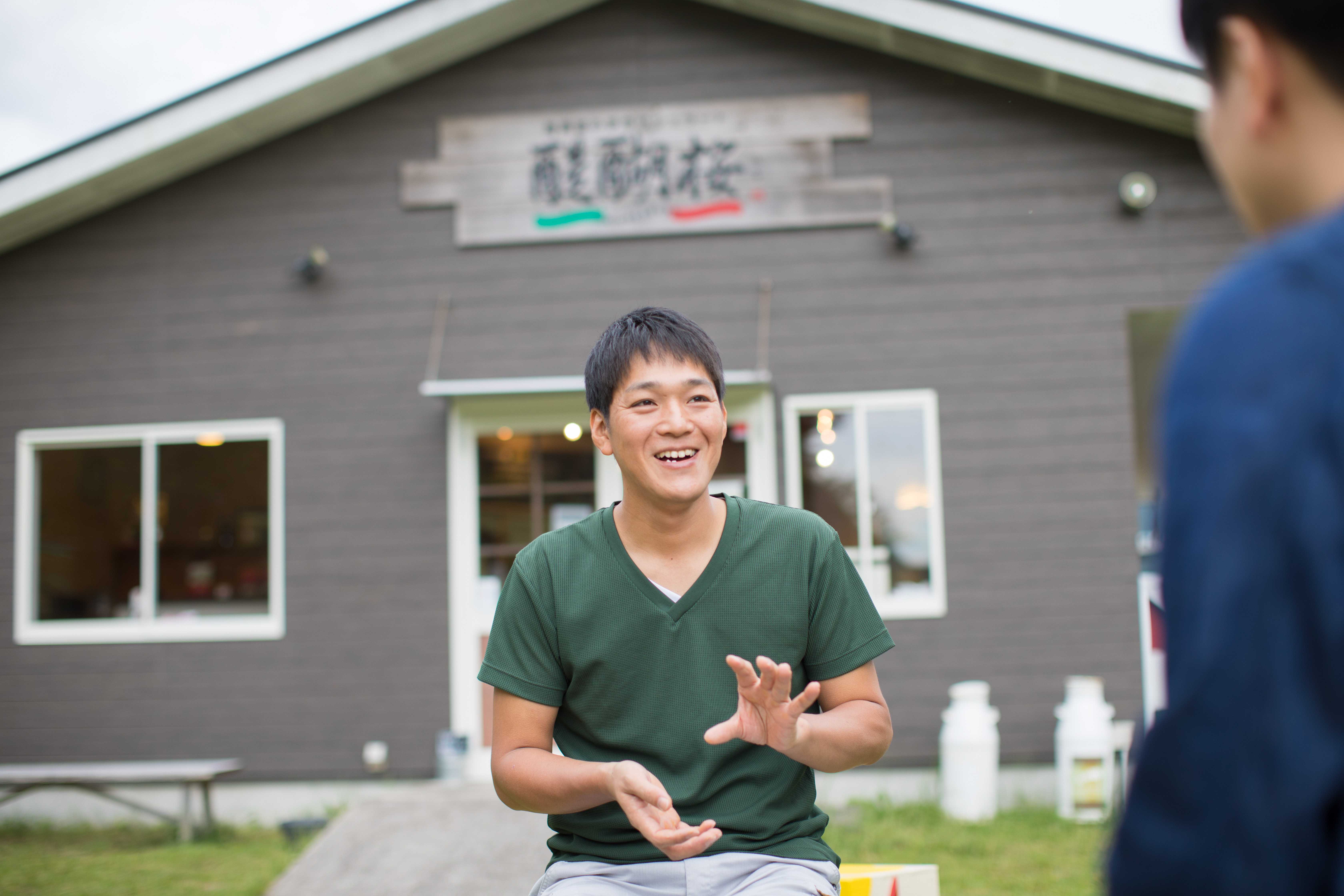 | 山本 | はい。出身は真庭市落合で、高校まで市内の普通科高校に通っていました。そのあとは、大阪の専門学校のペットビジネス科というコースに通いました。高校時代の友達はみんな大学に進学したんですが、自分も大学に行ってまでバリバリ勉強するのか・・?ともやもやしていました。 もともと僕は、「酪農を継げ」というのは一切言われていなかったんです。僕が学生の頃は景気も悪かったし、むしろやるなと言われていたくらいで…。どうせ勉強するなら好きなことに対して全力でのめり込みたいと思っていた矢先、その専門学校を見つけました。 1年生の頃、先輩が校内のトリマーのコンテストで優勝されたのがすごくかっこよくて、僕もそのコンテストに出てみたいと思いました。でも、通っていたコースではトリマーの勉強ができなかったので、先輩に弟子入りして修行して、2年生の時に大会に出場することができました。それがきっかけで、店舗の人に「トリマーのアルバイトに来ないか?」と声を掛けてもらえて、その後、就職までさせていただくことになりました。 5年目ぐらいの頃にチーフになったのですが、そろそろ独立するかと考えていた時期にふらっと地元に帰ったら、親父がすごく楽しそうに酪農の仕事をしてたんです(笑)。しんどい仕事のはずなのですが、実際に見たら笑顔で仕事をしていたのが、大阪に戻ってからもずっと印象に残っていていました。どうも気になるからもう一回地元に帰って、それまで一切何もやったことがなかった両親の酪農の仕事を手伝ってみました。 だんだんと興味が沸いてきて、とりあえず1年ぐらい続けてみたら酪農の方が全然性に合っているし、酪農から派生して何かやりたいなと思っていたらこのジェラートの店をオープンしちゃったし、もう大阪には戻れないなと。そんな感じで今に至ります(笑)。 でも・・・今から考えたら、大阪の専門学校に通っていた間も、どこか頭の片隅に「酪農」というワードが引っかかっていたような気がします。例えば乳製品を使って何か作ってみたいなと、ふわっとした興味レベルでしたが思っていましたね。 |