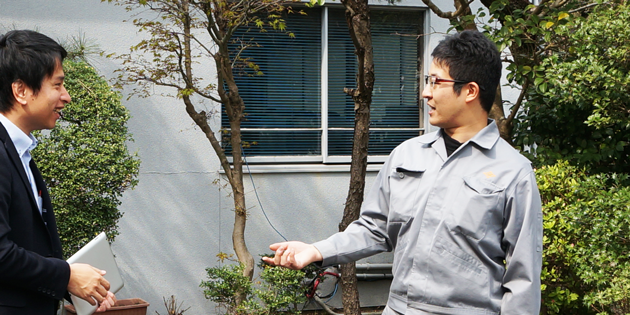 | 光井 | 1年目は現場で勉強して、その後、客先の製造現場で修業をしてました。そこで厳しさも楽しさも教えてもらいました(笑) |
