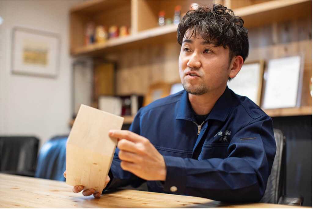 私自身、この会社に入るまでは、「集成材?何それ?」という感じでした。入社前に調べてみたら、私が住んでいるアパートの柱がまさに集成材だったんです。実際に全国の住宅の多くに私たちの集成材が使われているので、ほとんどの人が一度は触れたことがあるはずです。それまで気にもしなかったものが、実は身近に多く存在していて、私たちの暮らしを支えている。だからこそ、やりがいのある面白い仕事だと思います。まずはこの会社のことをもっと知ってもらって、一緒に面白い仕事ができたら嬉しいですね。
